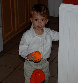Here's another update. The holidays were great. We had a lovely Thanksgiving with Ian, Sarah, and Scotia. Our little man dressed up for the event. He looked so handsome and GROWN UP! It's hard to believe that he's only 2 when you look at these pictures. Then, it was his 2nd birthday. With the playroom, there was more room to spread out and for the kids to play. However, the kids still ended up playing in the middle of the living room, with some of the adults seeking shelter downstairs. For some reason, we didn't take any pictures at Christmas. We did take video though and we'll post some soon.